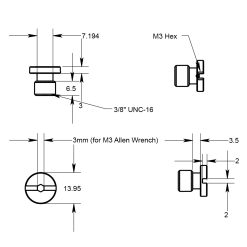 10x Stainless steel 3/8″/13 camera screw with M3 hexagon.